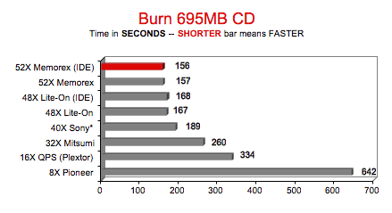 burner burned CD's 3.1 times faster than the