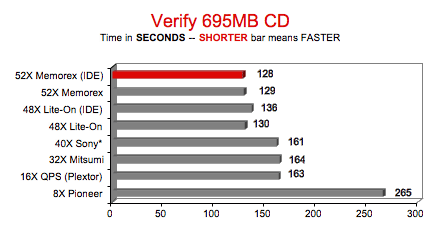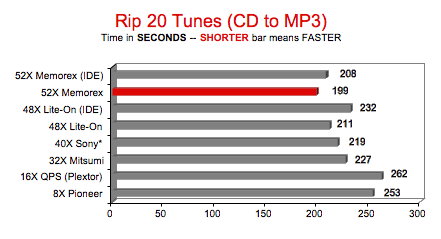 audio CD's, the 52X's speed gain was only 27% over
