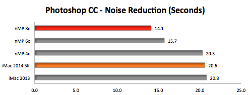 We timed how long it took to Reduce Noise in a sample RAW image.