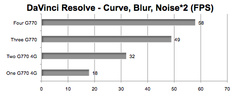 In the case of Octane Render and DaVinci Resolve, the advantage of up to four internal GPUs (over one or two) is clearly seen. If those pro apps are predictive of a future trend in Pro Apps, then top-tier Mac Pro consumers are going to want a way to add more GPUs to the new 'un-tower' -- like maybe a third party Thunderbolt 2.0 to PCIe 3.0 expansion chassis.