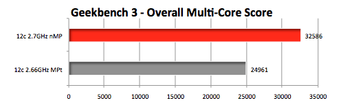 Thanks to the Other World Computing's test lab, we have some benchmark results for the 'late 2013' Mac Pro 2.7GHz 12-Core. And thanks to a 'Remote Mad Scientist' and long time, trusted friend, we have results for the same tests from a 'mid 2010' Mac Pro 2.66GHz 12-core.